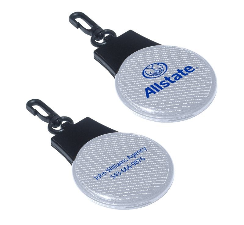 Light up your brand with this Tri-Function LED Blinking Light, a compact giveaway that delivers big visibility. Featuring an extra-bright LED with three light settings, it?s easy to use with a simple push-button on/off and a swivel clip for convenient attachment to bags, belts, or keyrings. Batteries included and ready to shine?perfect for trade shows, safety events, nighttime promotions, school programs, and outdoor giveaways. Features Allstate logo on one side and agency information on the other.