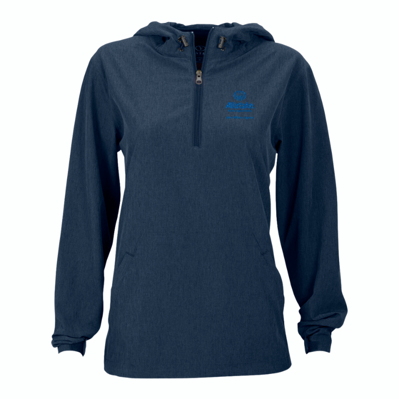 Boost your outerwear with this updated Anorak, featuring heathered stretch poplin fabric for added comfort and mobility. 95% polyester/5% spandex heather poplin body. Water-repellent finish.1/4 zip, stand up hooded collar with elasticized drawcord and cordlocks. Set in sleeves, hemmed cuffs with self-goods hook and loop closure. Even-hem with drop-tail bottom and adjustable drawcord. Front kangaroo pouch with zip pockets. Hidden microfiber cloth at inner front sweep for cleaning gadgets and glasses. Tagless label. Embroidered with the Allstate Vertical logo with tagline and 1 line of agent personalization.
