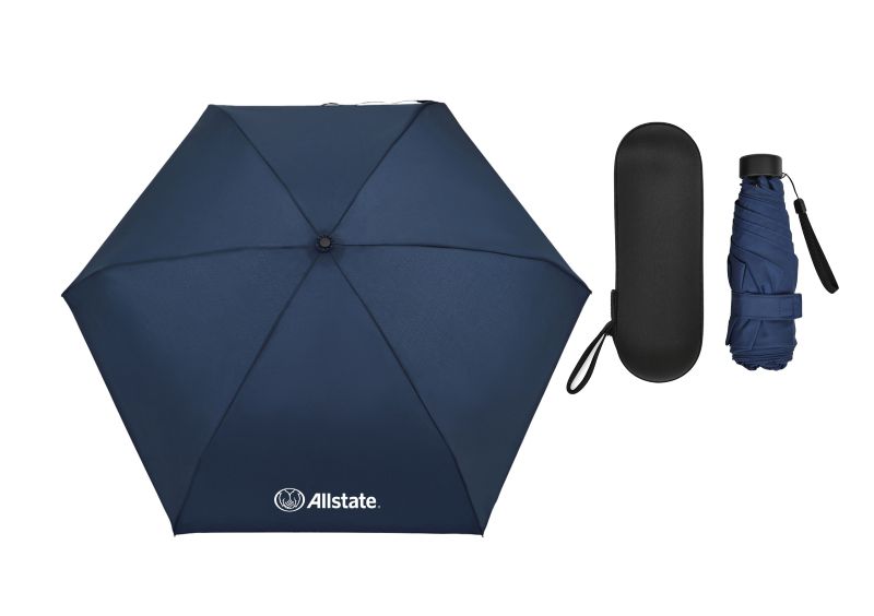 Stay dry with this compact umbrella. The mini size makes it perfect for travel, commuting, or daily use. 39" canopy diameter when opened. Features the Allstate logo.