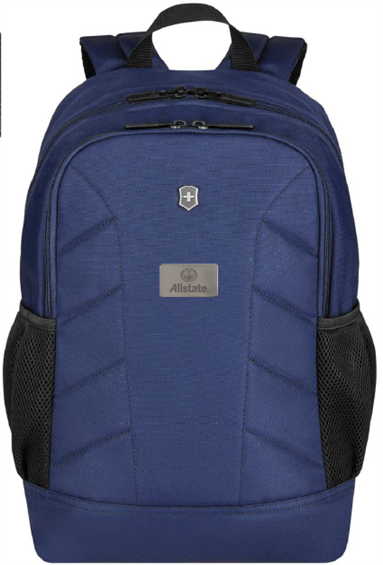 A mesh side pocket keeps your water bottle or umbrella within easy reach, while the Pass-Thru grab handle conveniently slides over rolling luggage for seamless travel. Allstate logo etched on brushed nickel ingot.
