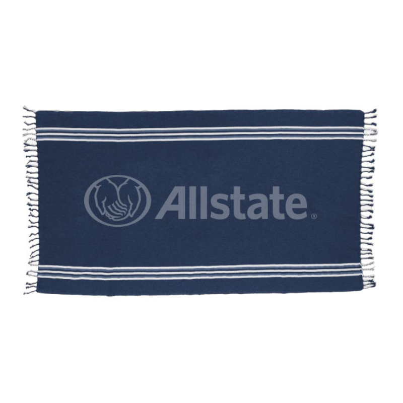 Crafted from premium 100% Turkish natural cotton, this towel gets softer with each wash. Horizontal multi-toned stripes frame your full-size logo while the hand-tied tassels add extra flair. Quick-drying and stylish, it combines both form and function. Serves as a wrap or blanket as well. Sand free. Certified to meet OEKO-TEX Standard 100. Features a tonal Allstate logo.