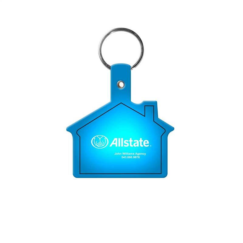 House flexible keytag with 1" split ring. Features the Allstate horizontal logo with 2 lines agent personalization printed in white.