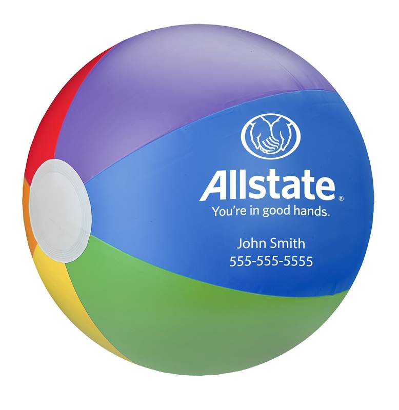 16" rainbow beach ball. Imprinted with the Allstate Vertical logo and up to 2 lines of personalization. Personalization is optional.