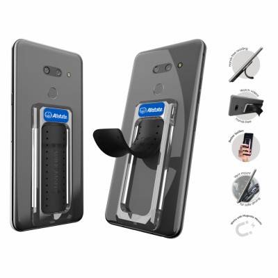 Morph virtually any phone/case into a multi-function branding powerhouse with the Scooch Wingback. This four-in-one accessory turns the simplest phone case into a phone stand, a secure grip, a vent mount, and it is magnetic mount ready. A less bulky solution in comparison, this slim phone/case accessory lays flat until snapped into use. Compatible with virtually any phone or case. Works in portrait or landscape orientation. Doubles as a finger grip to secure the phone in-hand. Great for one-handed texting and taking selfies. Acts as a vent mount for most car air vents. Imprinted with the Allstate horizontal logo. Patent Pending.