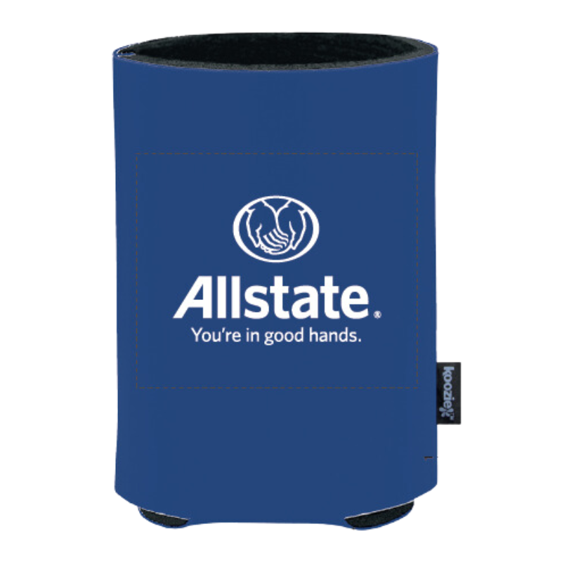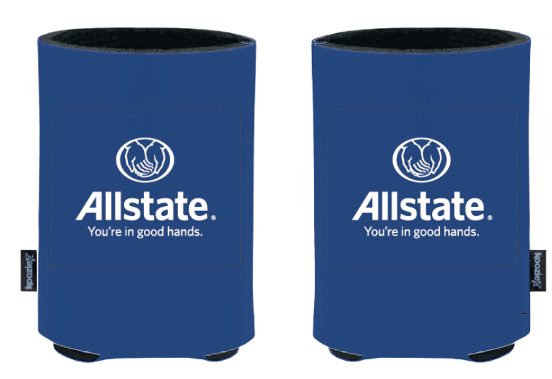 The Collapsible KOOZIE folds flat for easy transport. It is vinyl with a foam backing. Features the Allstate vertical logo with tagline printed in white on both sides.