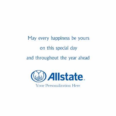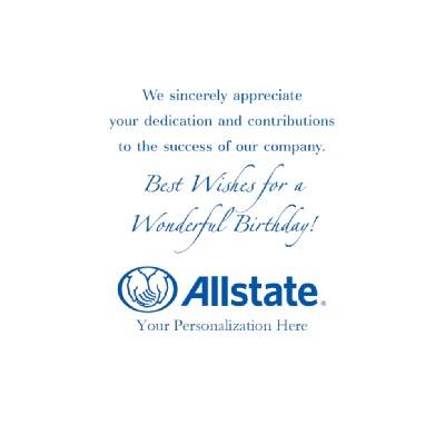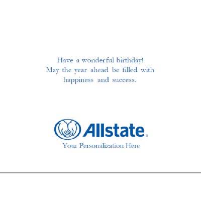 Birthday Banners Birthday Cards with your choice of paper stock; includes company name, verse and matching envelopes. Select the verse you would like to include in your card from the drop down above. Includes silver lined envelope with the Allstate logo and return address. This item must be ordered in increments of 25.