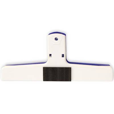 Clip, 6" size. Great size for keeping snack bags freshly sealed or keeping documents grouped. Features a patented design with sturdy gripper teeth and a durable internal metal spring. Blue/white item with your choice of logo and agent imprint in white.