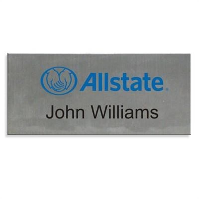 Printed .025" aluminum name badge in silver finish with magnetic clasp. Allstate logo on top with your name below. Great item to have for special events and functions!