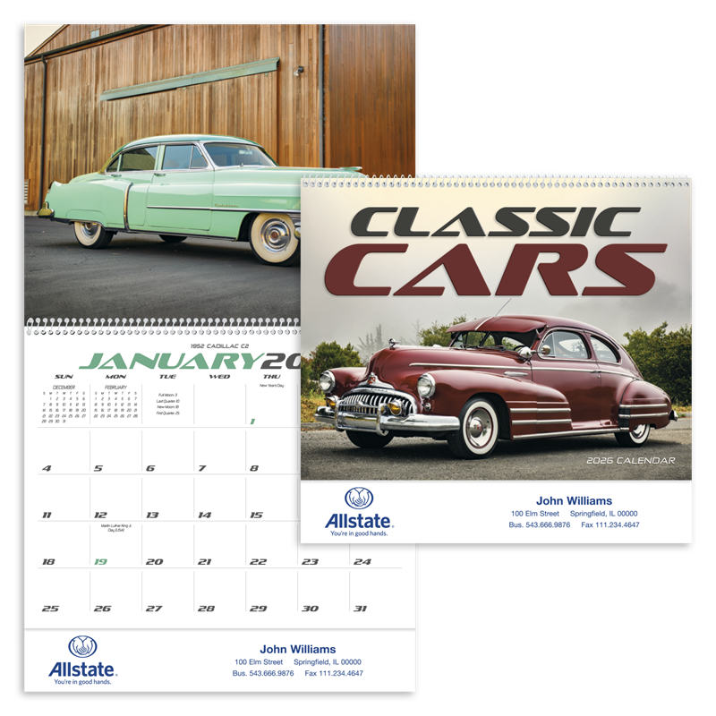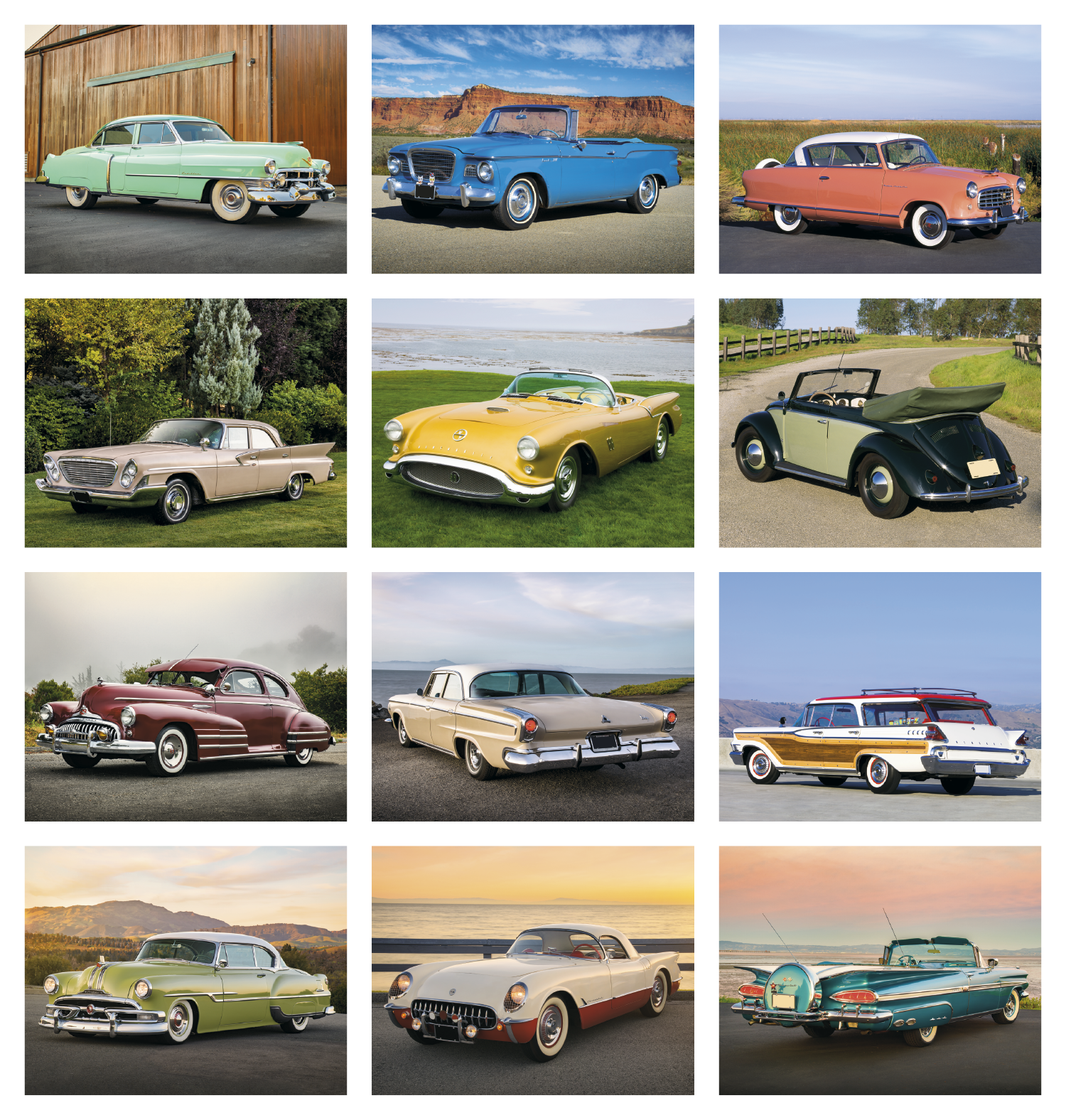 Features 12 mint-condition classic cars from the 1940s, 50s and 60s.