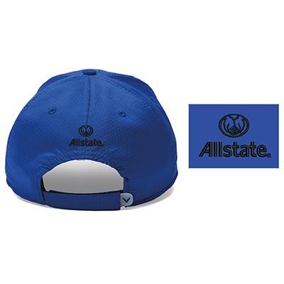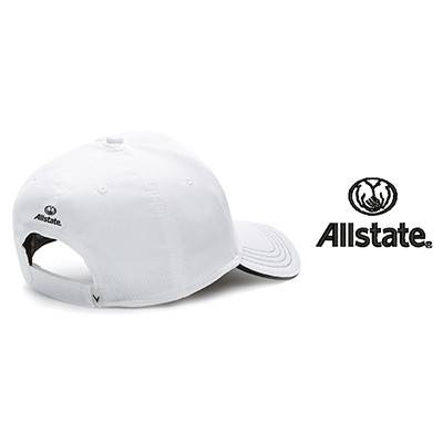 One size. 100% performance polyester. Adjustable Velcro closure with Chevron rubber tab. Contrast thread stitching detail on brim. Liquid Metal Callaway logo on front panel. Back arch embroidered with the Allstate Vertical logo without tagline.