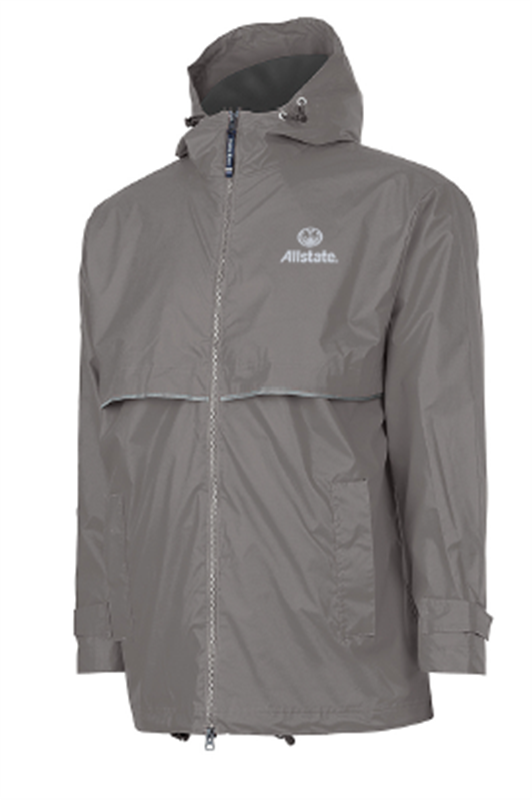 This wind and waterproof New Englander is polyurethane bonded to a woven backing to provide additional fabric strength. Lined with contrast colored mesh for air-flow circulation and taffeta nylon in sleeves for easy on/off. Hood and open hem with shockcord drawstrings. Wind flap and heat-sealed seams throughout to seal out wind/rain. Front vented capes for breathability and easy decorating access. Contrast colored stripe accent on front and back. Two-way front zipper offers freedom of movement. Features covered zippered side pockets and adjustable cuffs with hook & loop closure. Embroidered with the Allstate vertical logo with tagline on the pocket.