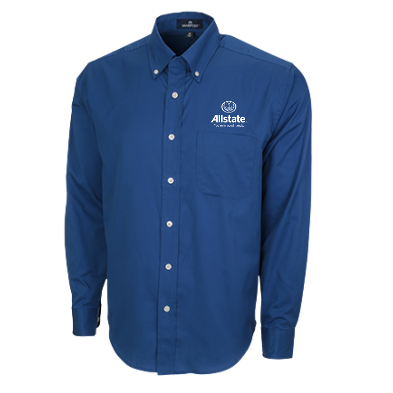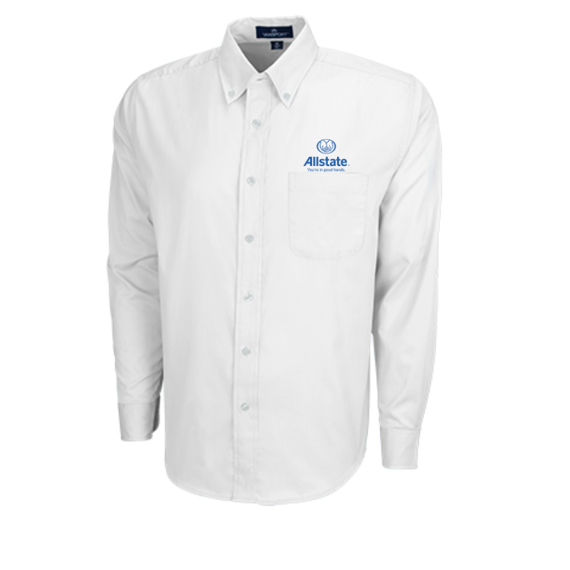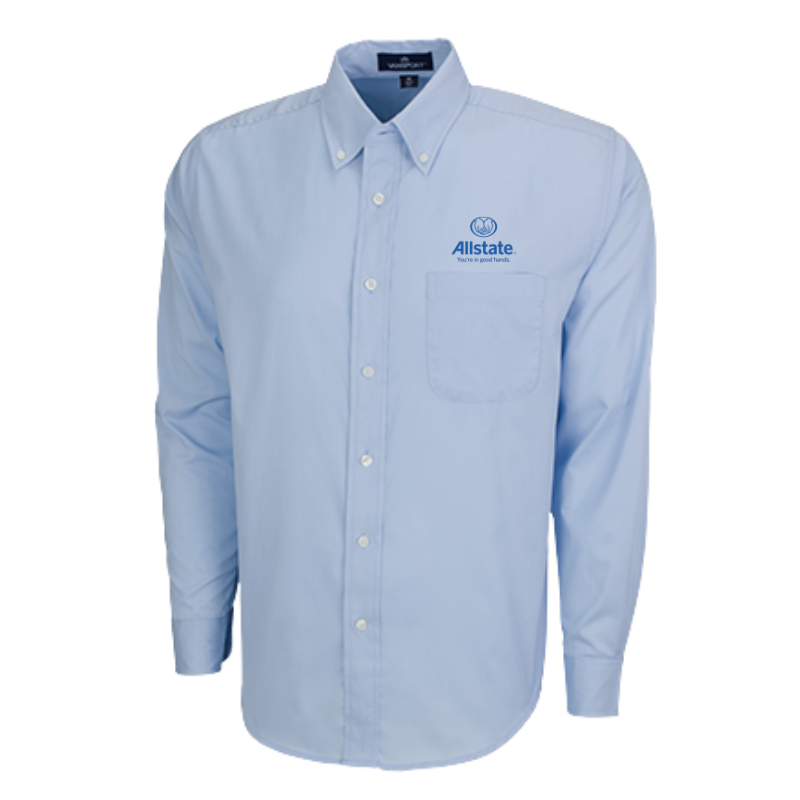 An upgraded dress shirt designed with breathable, Vansport moisture-wicking fabric to keep you cool and comfortable all day. It's wrinkle-resistant, so it looks great without ironing, and easy-care machine wash and dry means no dry cleaning needed. 55% cotton/45% polyester, 3 1/2 oz. Vansport(TM) moisture management twill body, UV protection, button-down collar, polished buttons, left-chest patch pocket, single-needle tailoring, back yoke with box pleat, buttoning sleeve placket and cuff, replacement buttons. Imported. Embroidered the Allstate logo.